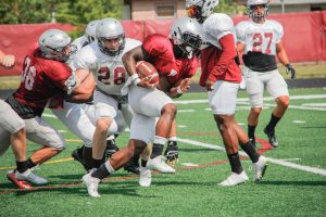 Head Football Coach Bob Bartolomeo said that the Greyhounds will have 21 practices instead of the 26 practices they had last year. The players and coaches are working on getting used to the new schedule, which consists of a morning walk-through, practice in the afternoon and meetings throughout the day. Fall camp is when the coaches decide who’s going to be an active member of the team and the players now only have one-two and a half hour practice, to show what they can do.