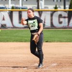 Although the team suffered two large losses, it was able to end the day with a larger victory on its MDA day by presenting a $9,126.20 check for the Muscular Dystrophy Association. The check was presented on behalf of “Team Liam,” which honors Liam Ealy, the nephew of Greyhound softball alum Megan (Hall) Slightom. The check was given to the Ealy family by the entire softball program, and Ealy threw out the first pitch for the day. The check was the largest amount the team has donated in the years it has participated in year-long fundraising for MDA, beating last year’s total by more than $1,000. Frost said she was thankful for all of those who contributed to MDA and was impressed with the work the team did in finding donors and the MDA shirts.