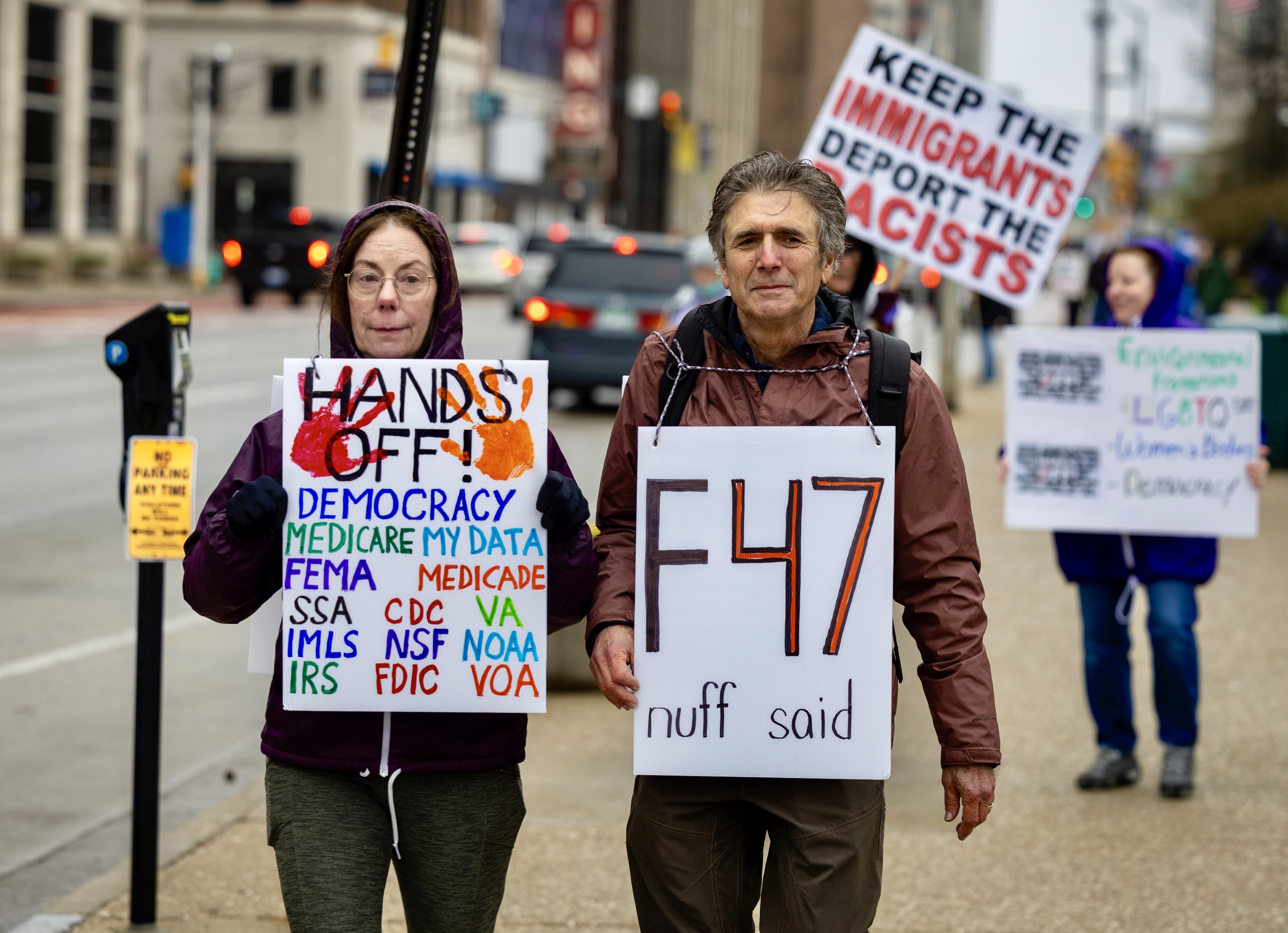 An Indiana federal employee said she was grateful to finally get out to a protest because she has been frustrated at the current administration but was not sure what she could do. Her and her 14-year-old daughter attended the protest together, cheering along with the crowds and waving their signs. The federal employee said she loved seeing how many people were in attendance, especially since Indiana is a red state, and the political climate can make some Hoosiers feel lonely and helpless sometimes.