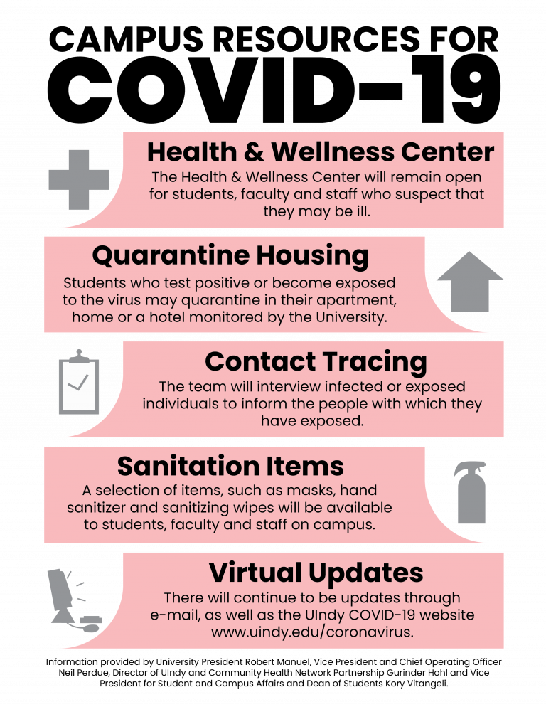 UIndy explains on-campus COVID-19 resources that will be available News UIndy explains on-campus COVID-19 resources that will be available Noah Fields | Feature Editor August 19, 2020 This semester at the University of Indianapolis, the goal is to protect the campus community, according to... Read More Read more about UIndy explains on-campus COVID-19 resources that will be available