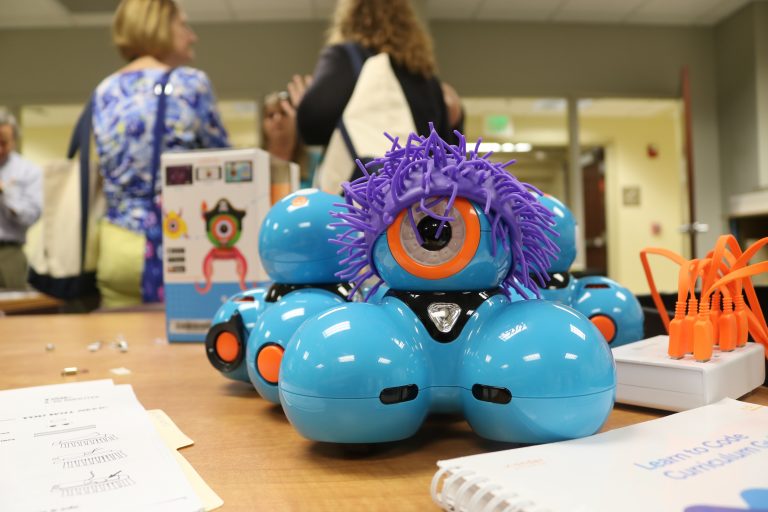 Boxes of materials sit on shelves and 3D printers lay on tables, ready to be used to...